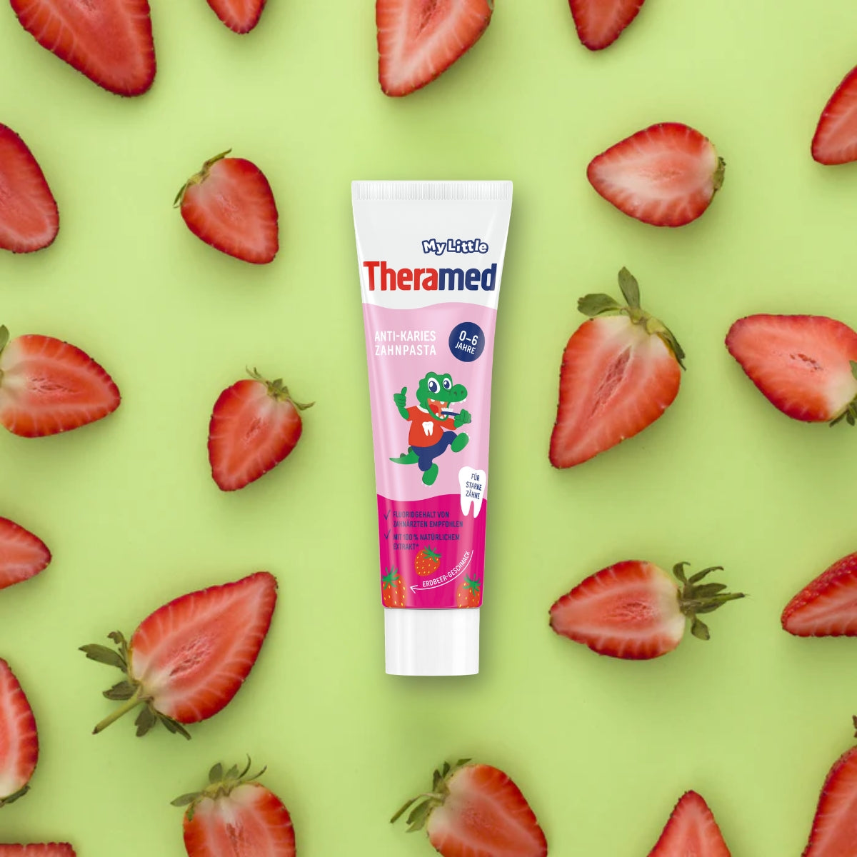 Die Theramed Junior Produkte sind speziell für die Bedürfnisse von Kinderzähnen entwickelt. Somit wird der von Zahnärzten empfohlene Fluoridgehalt verwendet und ein aktiver Kariesschutz integriert. Damit Zähneputzen außerdem noch Spaß macht, schmecken unsere Zahnpasten nach frischer Erdbeere - ein Traum!